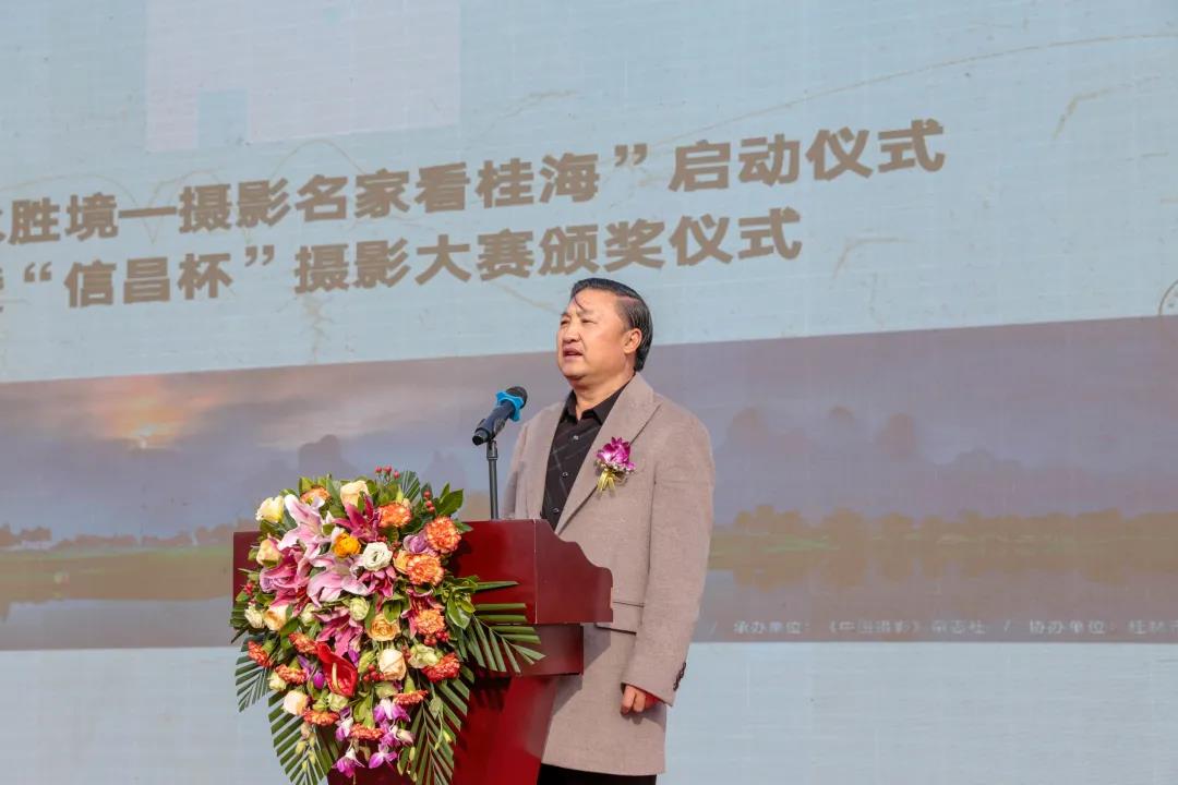 11月28日下午,“攝影名家看桂?!眴?dòng)儀式暨信昌杯攝影大賽作品頒獎(jiǎng)儀式,如期在桂海晴嵐山水美學(xué)生活館舉行。桂林市信昌投資集團(tuán)董事長(zhǎng)賓恩信、中國(guó)攝影家協(xié)會(huì)主席李舸等出席了現(xiàn)場(chǎng)活動(dòng)。